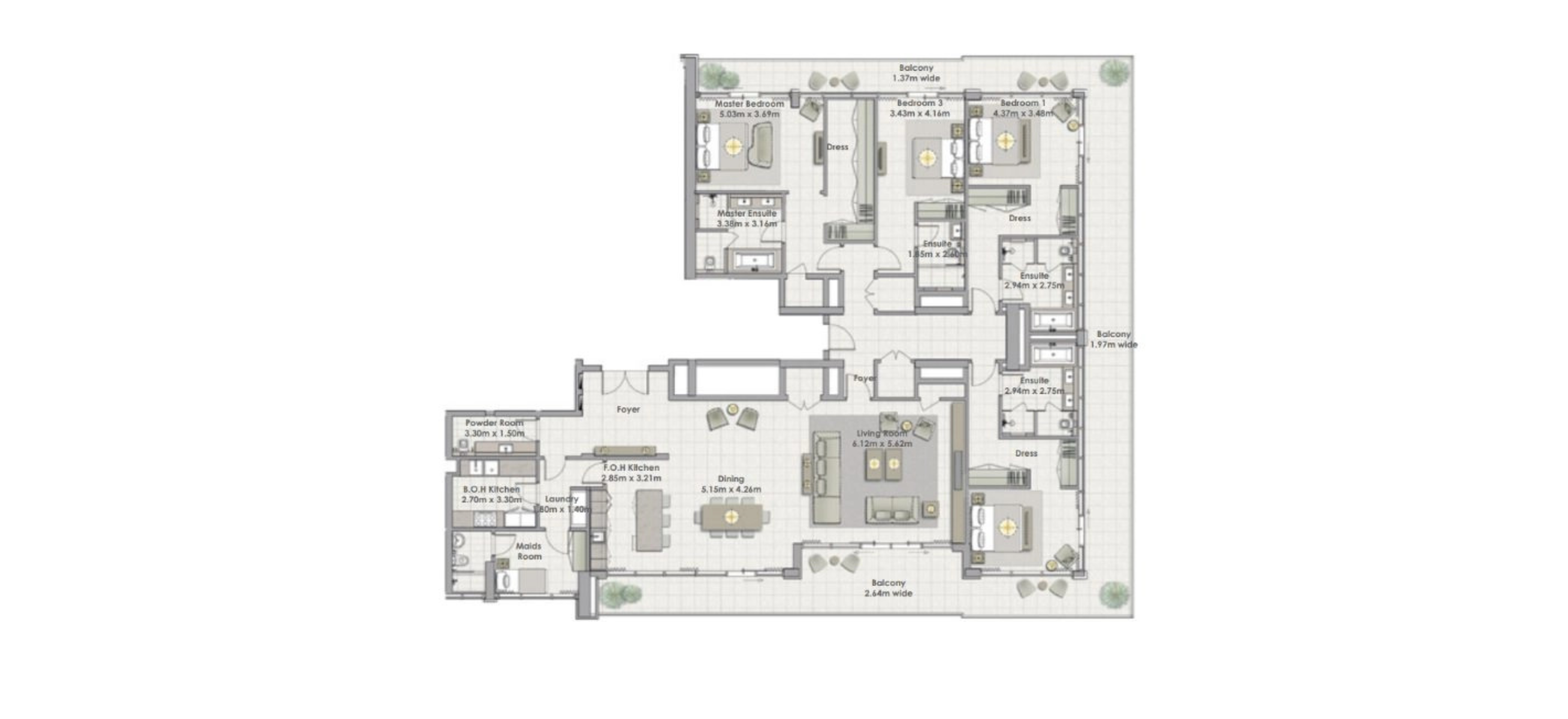 3-спальные апартаменты 150 кв.м в ЖК Crest Grande расположенным в элитном создаваемом районе Sobha Hartland