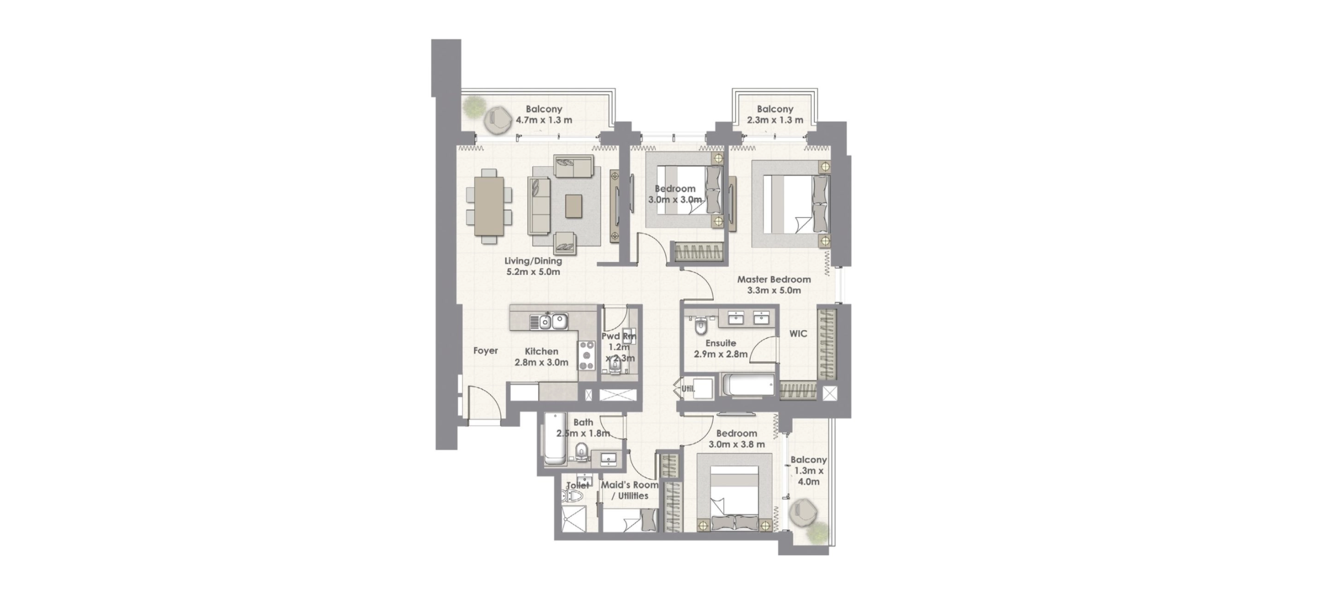 - 3 спальни
