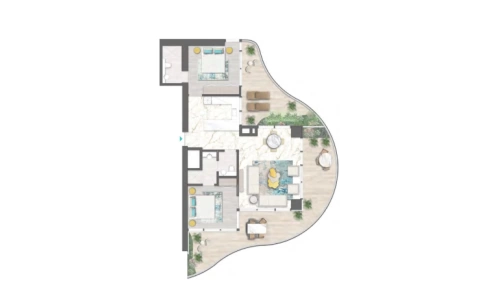- дизайнерские изысканные интерьеры резиденций и общественных зон жилого комплекса выполнены в нежных оттенках голубого и зеленого и декора золотистыми и прозрачными деталями;
