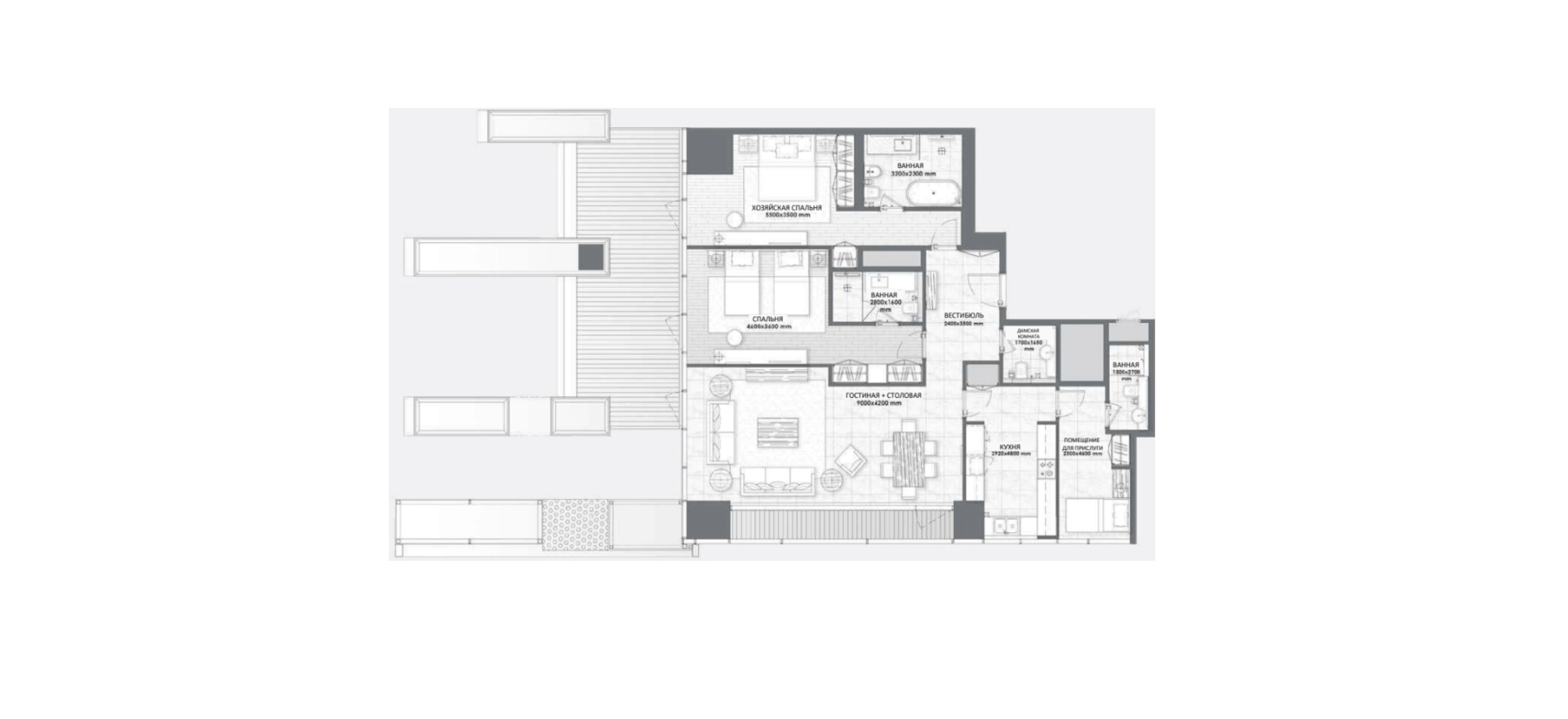 - дизайн эксклюзивного интерьера и премиальной мебели от всемирно известного основателя автомобильной компании Pagani Automobili – Horacio Pagani;