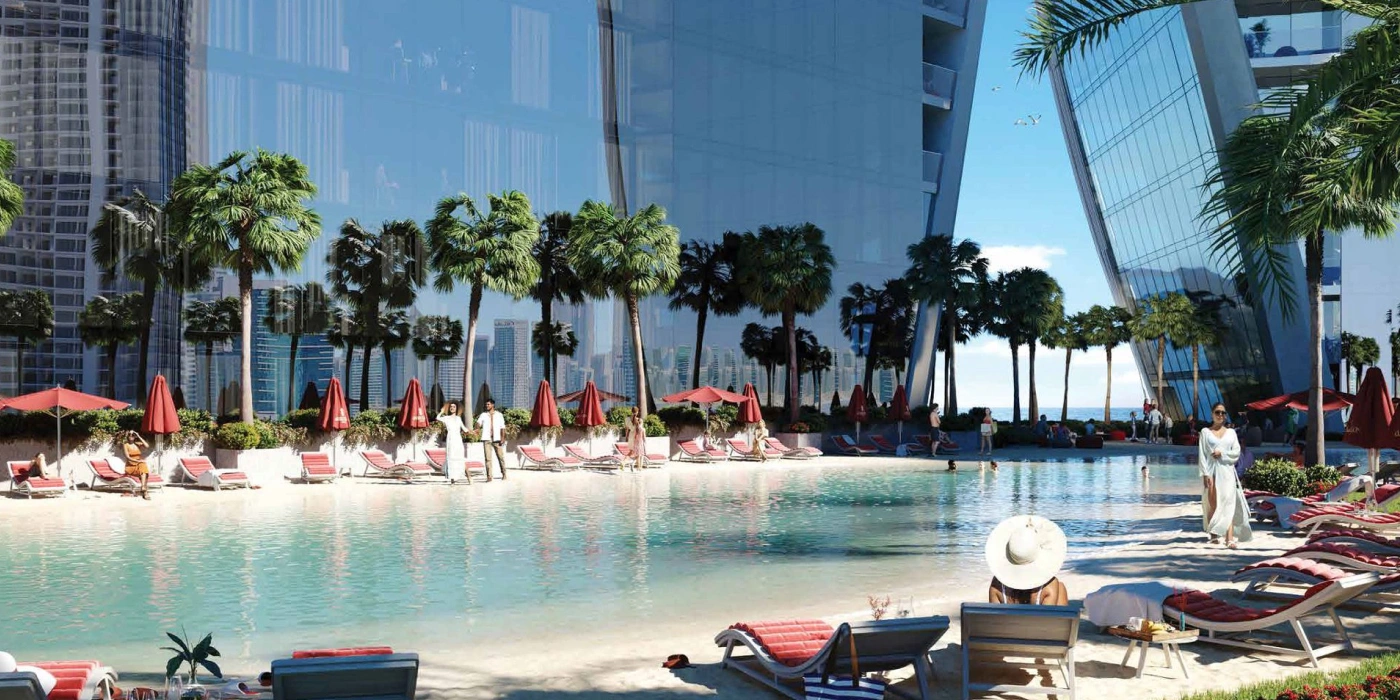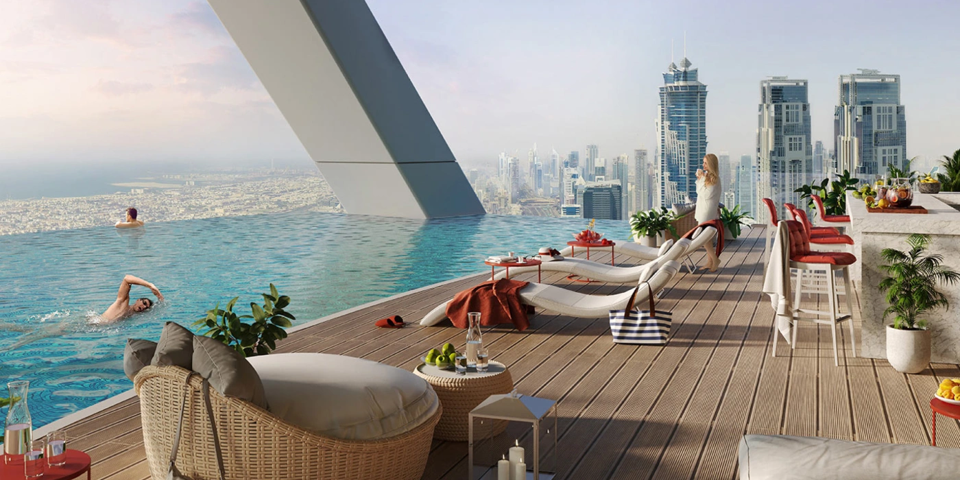 2-спальные апартаменты c доступом к премиальным удобствам и панорамным видом на горизонт Дубая.