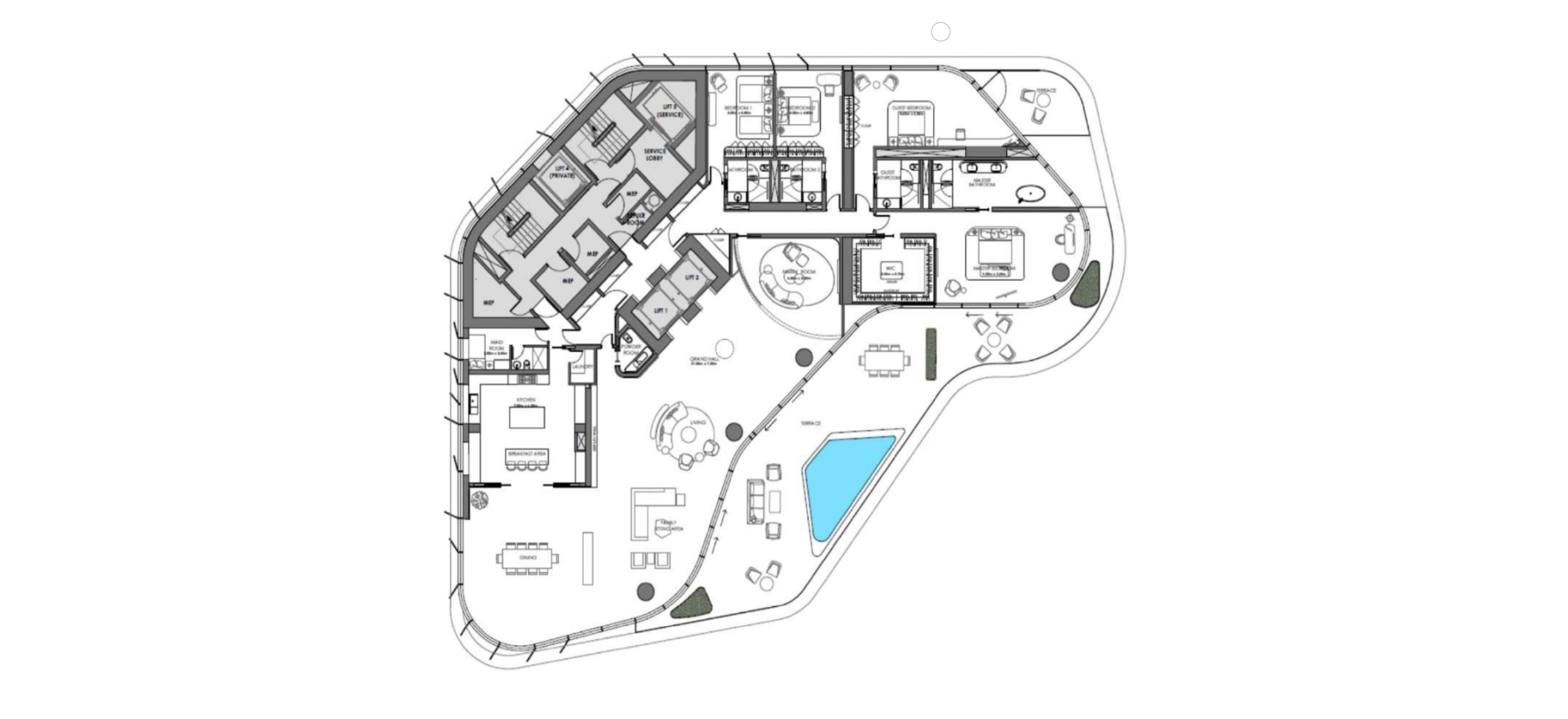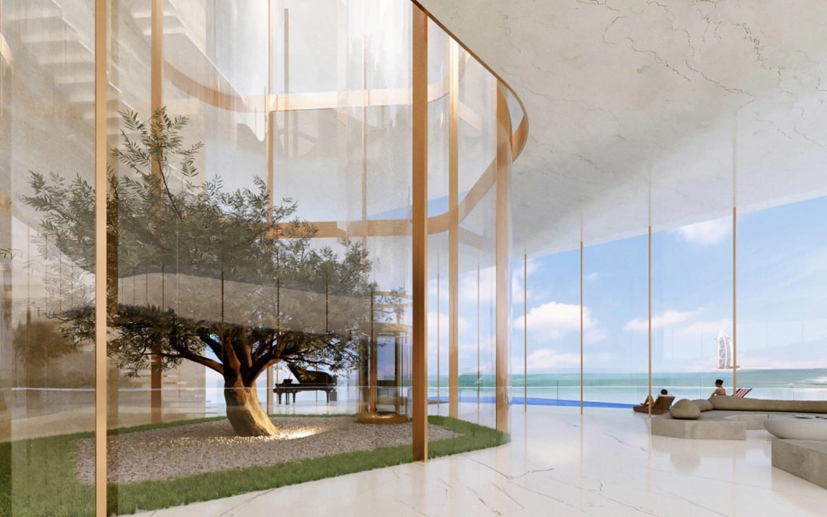 - 3-х этажный пентхаус будет иметь атриум высотой на все три этажа. В его центре будет установлено тысячелетнее оливковое дерево. Также в пентхаусе будут большие террасы и 2 бассейна с 270 градусным обзором острова Palm Jumeirah.