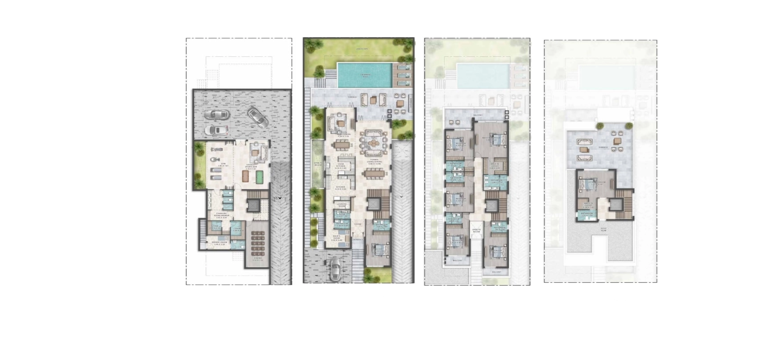Venice представляет из себя сообщество, которое включает в себя отдельно стоящие виллы с различным количеством спален — 6 или 7, с площадью от 377 до 2299 кв. м.