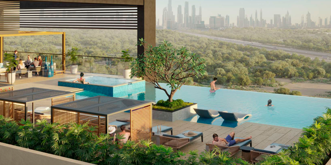 - на крыше комплекса пейзажный бассейн и лаундж со смотровой площадкой.