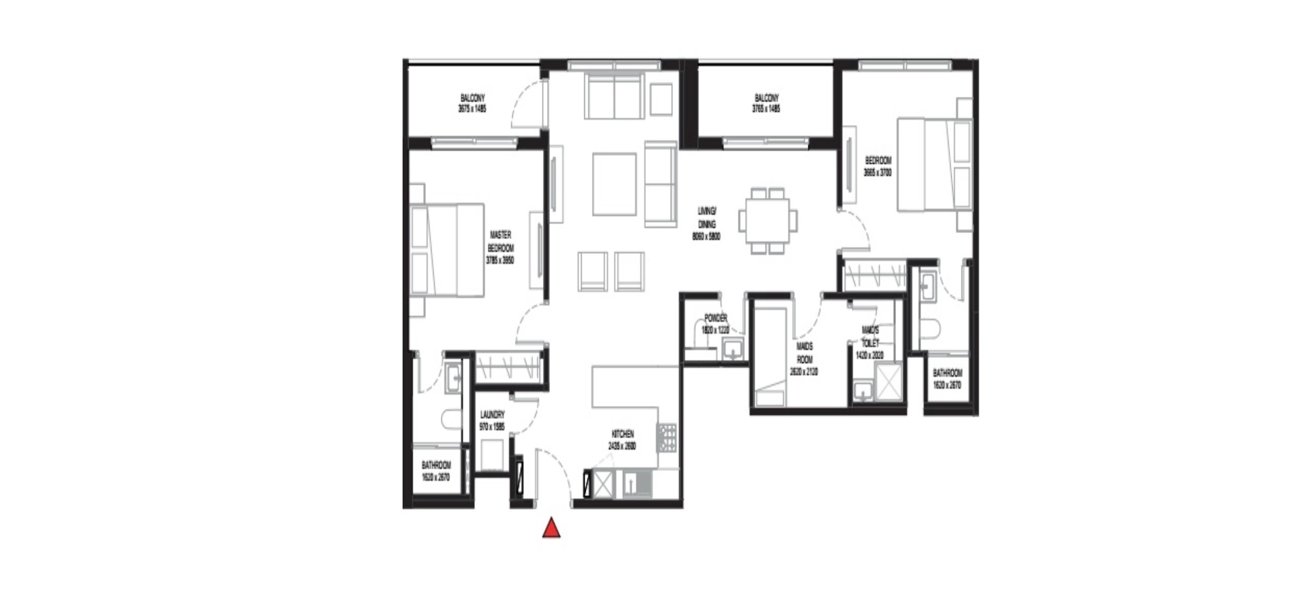 - в апартаментах с 2 и более спальнями будет комната для обслуживающего персонала;