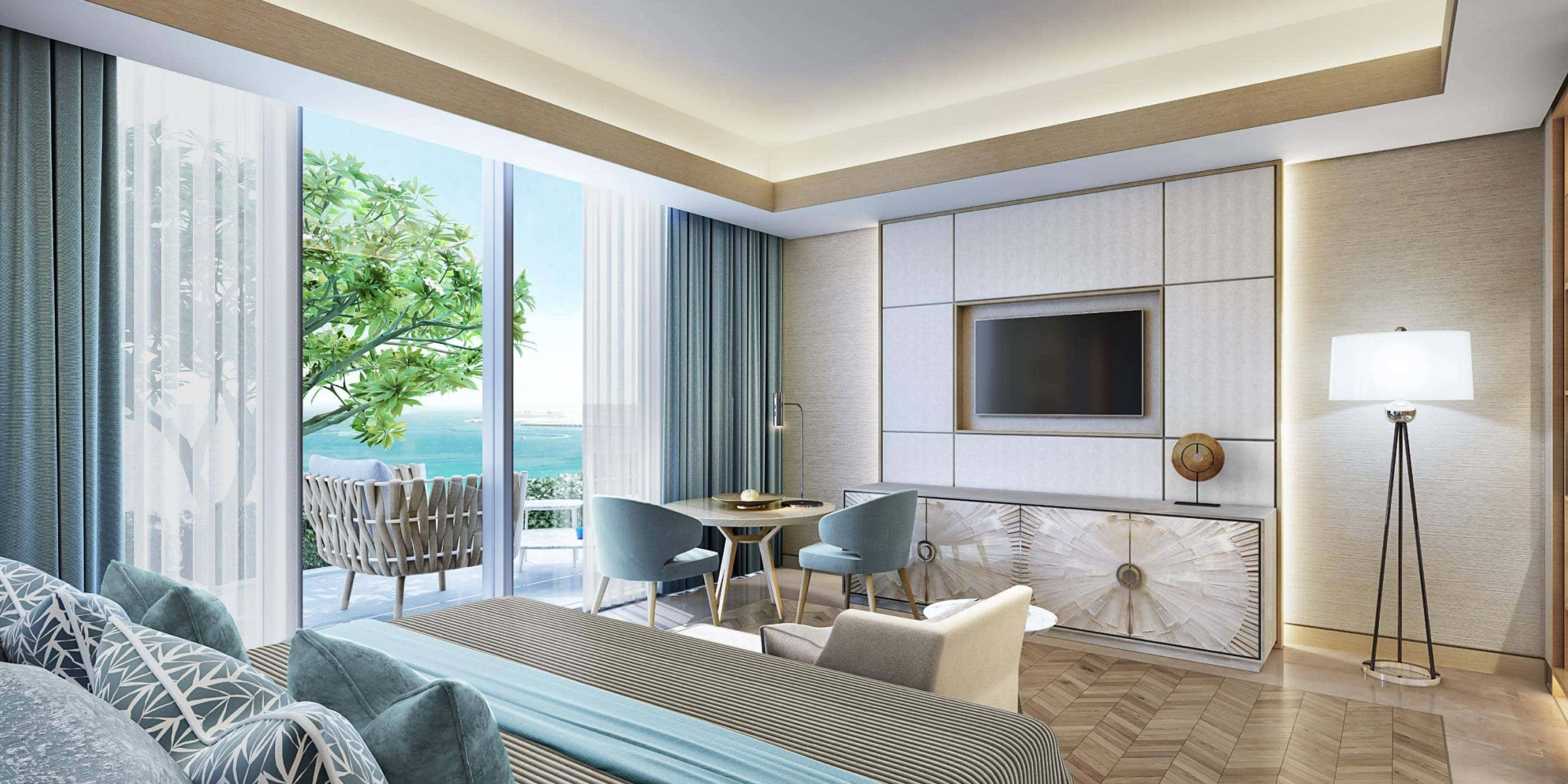 - панорамные балконы обеспечивают потрясающий вид на Персидский залив и Айн-Дубай (самое высокое колесо обозрения в мире);