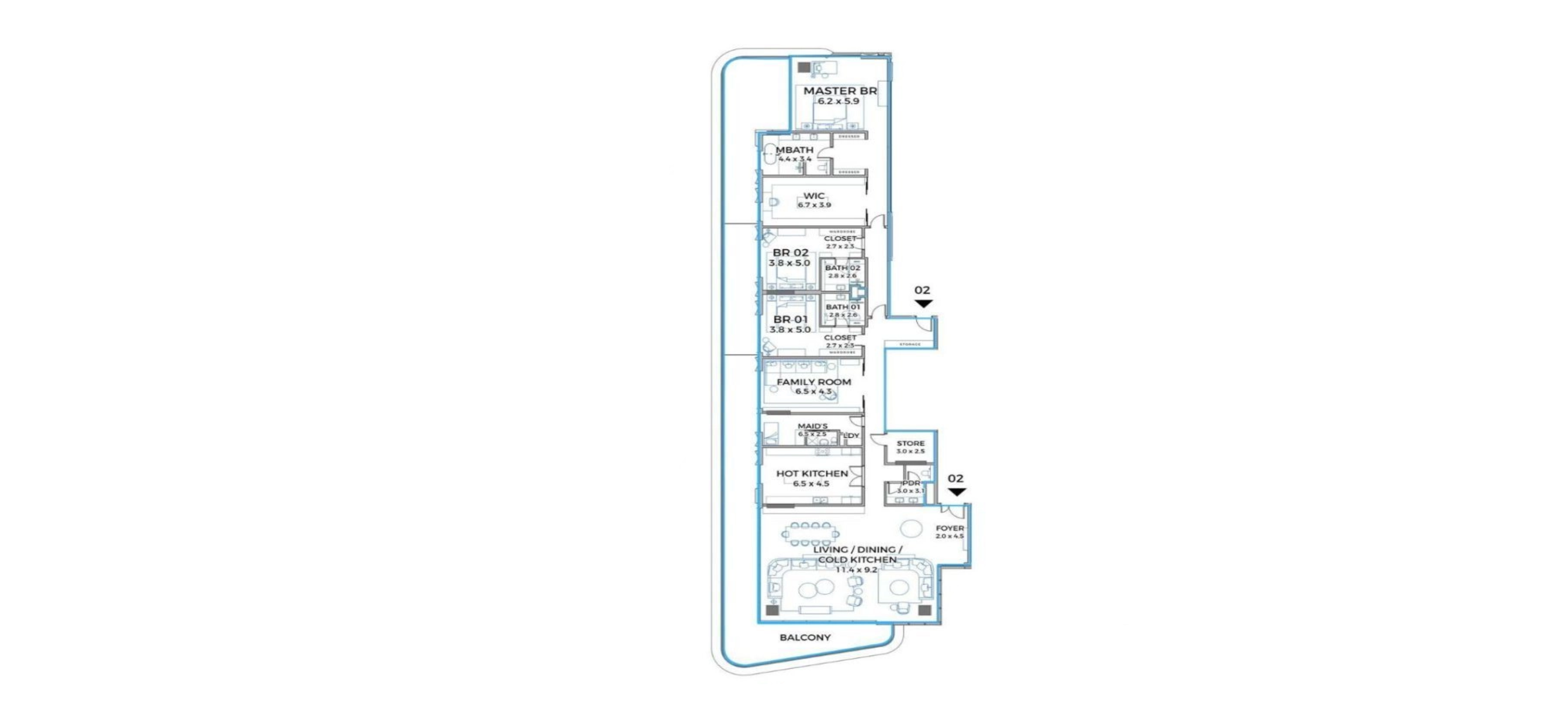 - в резиденциях (исключая апартаменты с 1 спальней и некоторых апартаментов с 2 спальнями) будет комната для обслуживающего персонала;
