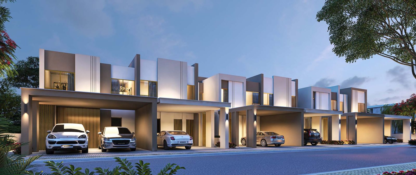 - крытые парковочные места в передней части резиденций;