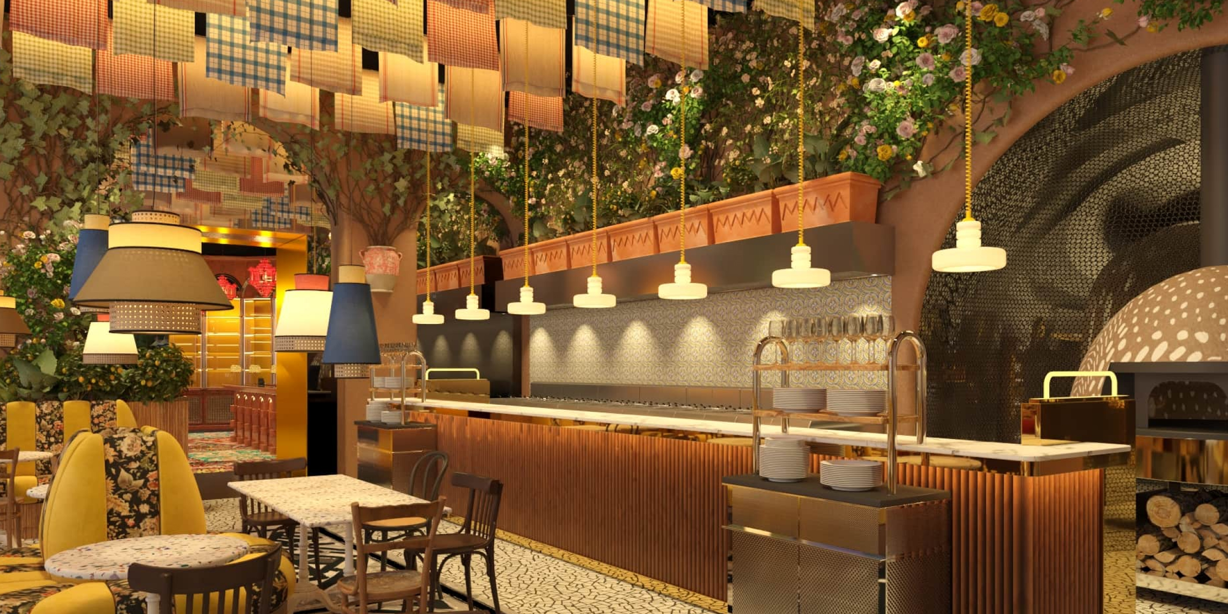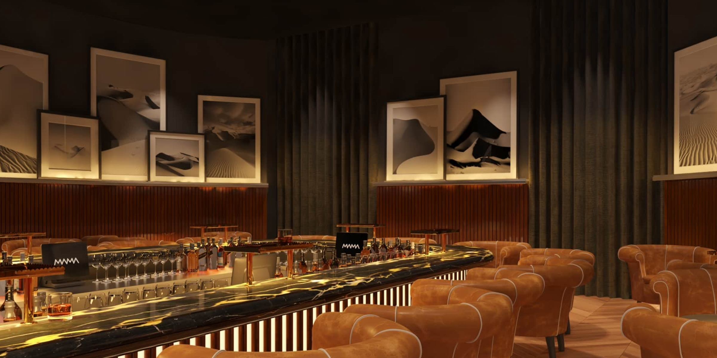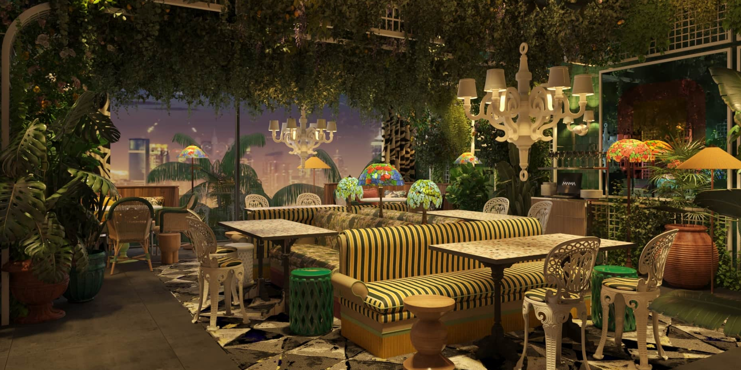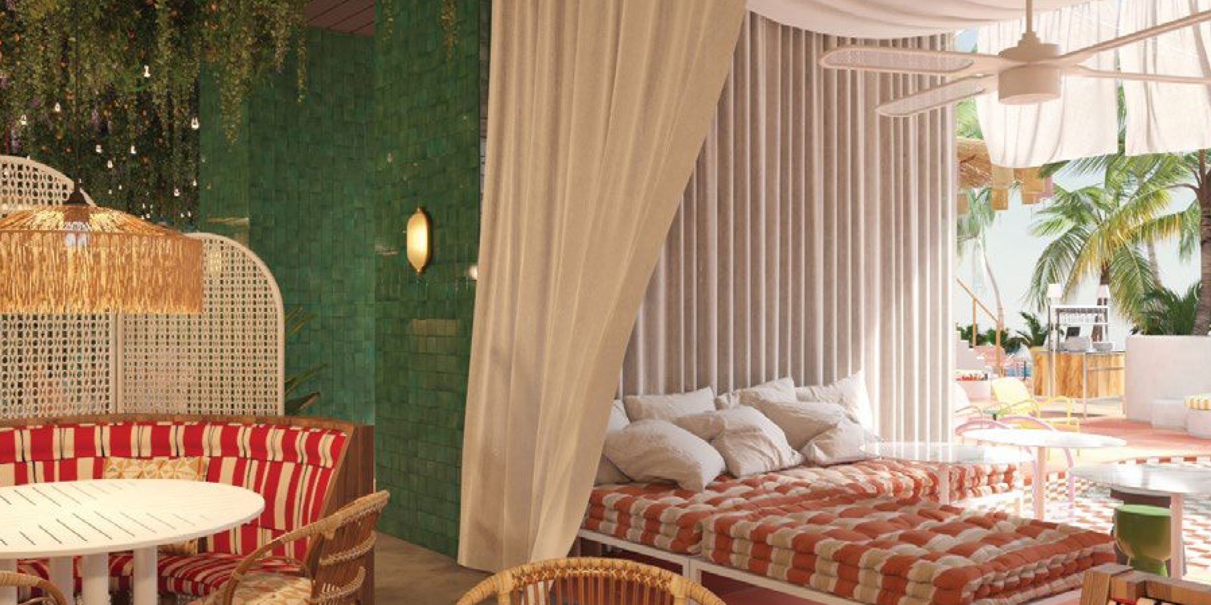 - в отделке будут использованы эклектичные обивочные ткани от Pierre Frey, белый мрамор Arabescato с отшлифованными плитами, отделка из латуни и полированной нержавеющей стали, ковры Balasan, а также древесина американского ореха и дуба;