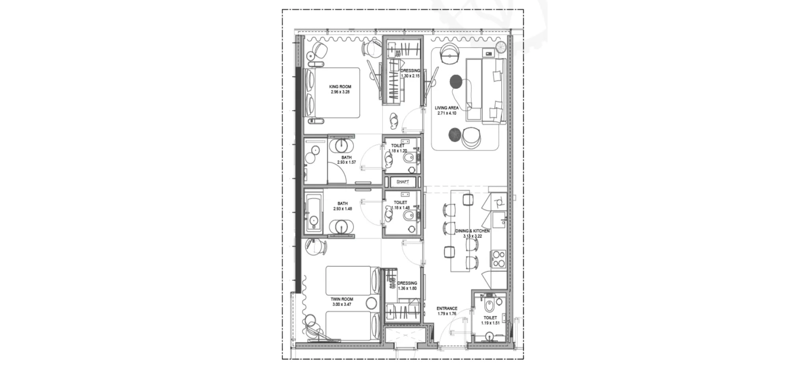 1-спальные апартаменты 72 кв.м. в ЖК Tria роскошном комплексе, который расположен в районе Dubai Silicon Oasis
