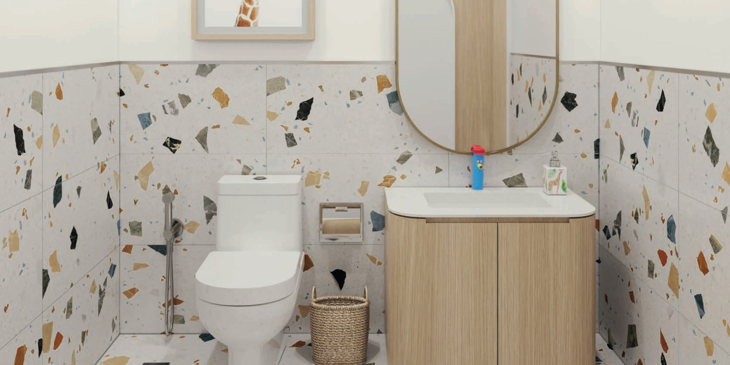 - стены ванных комнат будут ярко облицованы, иметь фарфоровый пол, а также зеркальные шкафы и полки.