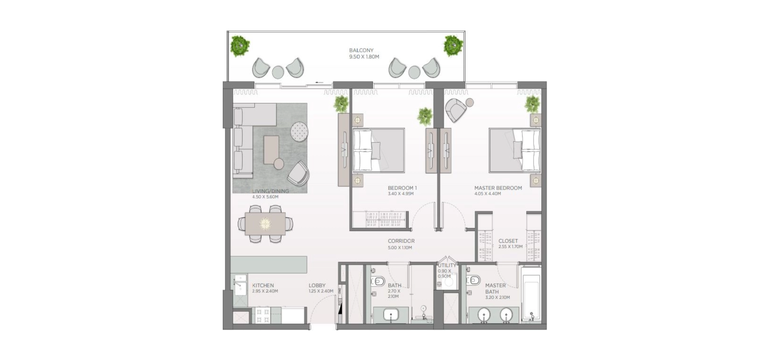 2-спальные апартаменты 124 кв.м. в ЖК Laurel Central Park проекте элитного жилого комплекса средней этажности, который расположен в районе Downtown