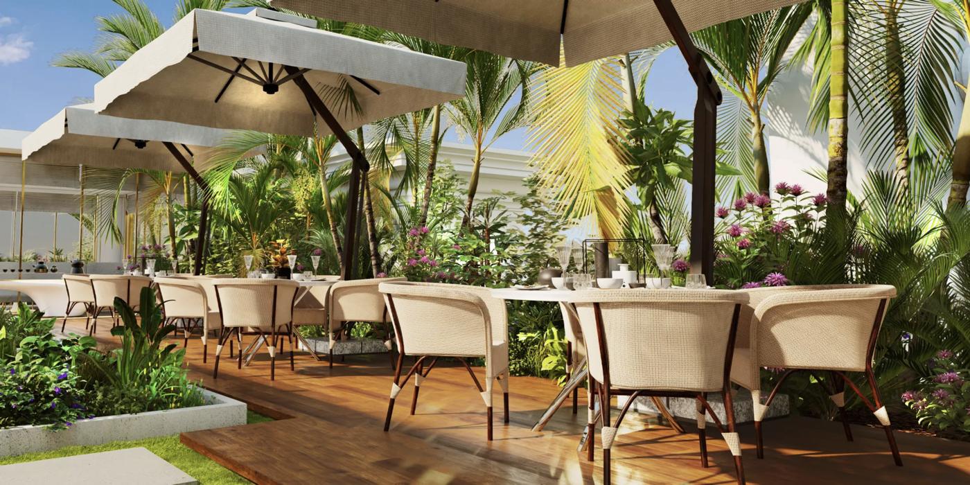 Просторный таунхаус площадью 288 кв.м и 3 спальнями отлично подойдет для всей семьи. Вам будет доступен частный пляж и бассейн.