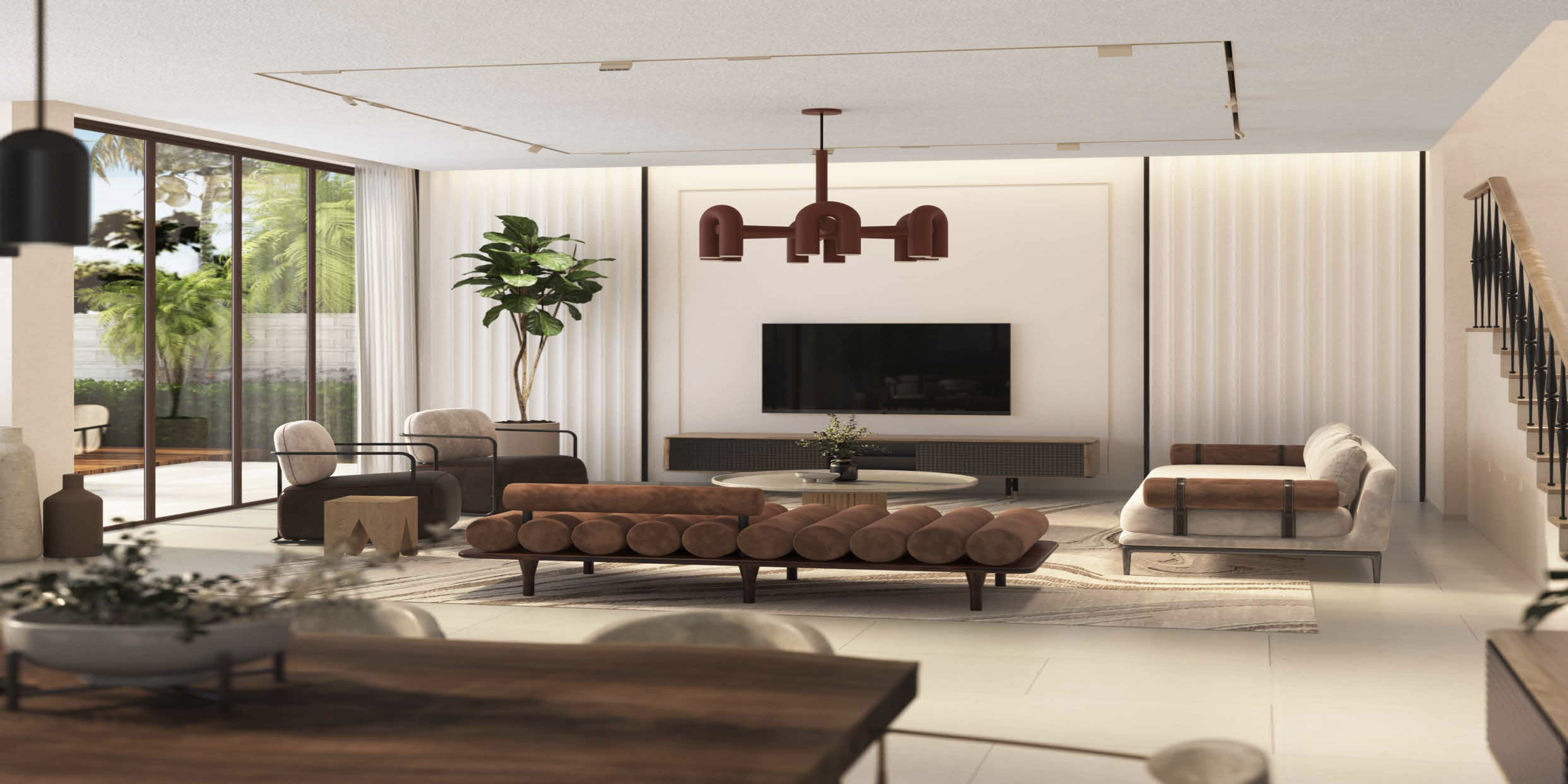 Особняки выполнены в традиционном для Монте-Карло стиле, с ярко-белыми стенами, декоративными элементами из гладкого дерева, панорамными окнами и высокими потолками, обеспечивающими яркое естественное освещение и ощущение пространства.