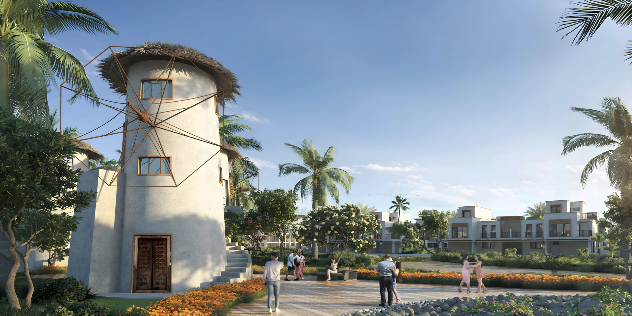 Ключевая особенность кластера Mykonos в его атмосфере греческого курорта, которая создается за счет отделки в светлых тонах и деревянных орнаментов. Также, проект будет дополнен барами, пляжными клубами и ландшафтным парком с оригинальной ветряной мельницей.