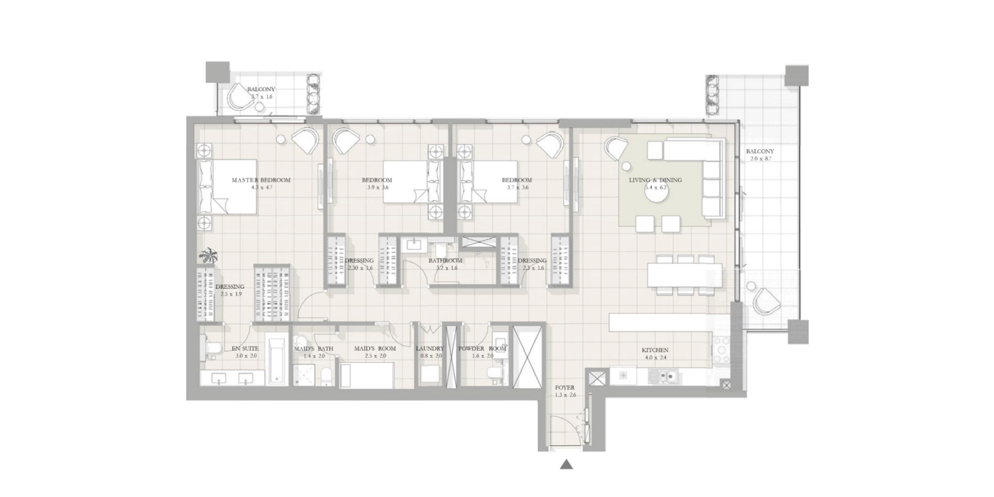 2-спальные апартаменты площадью 72 кв.м в ЖК North 43 c доступом к бассейну и фитнес-центру.