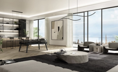 Просторные апартаменты площадью 152 кв.м с частной террасой и панорамным видом, расположенные в новом ЖК Al Habtoor Tower, в самом сердце Дубая.