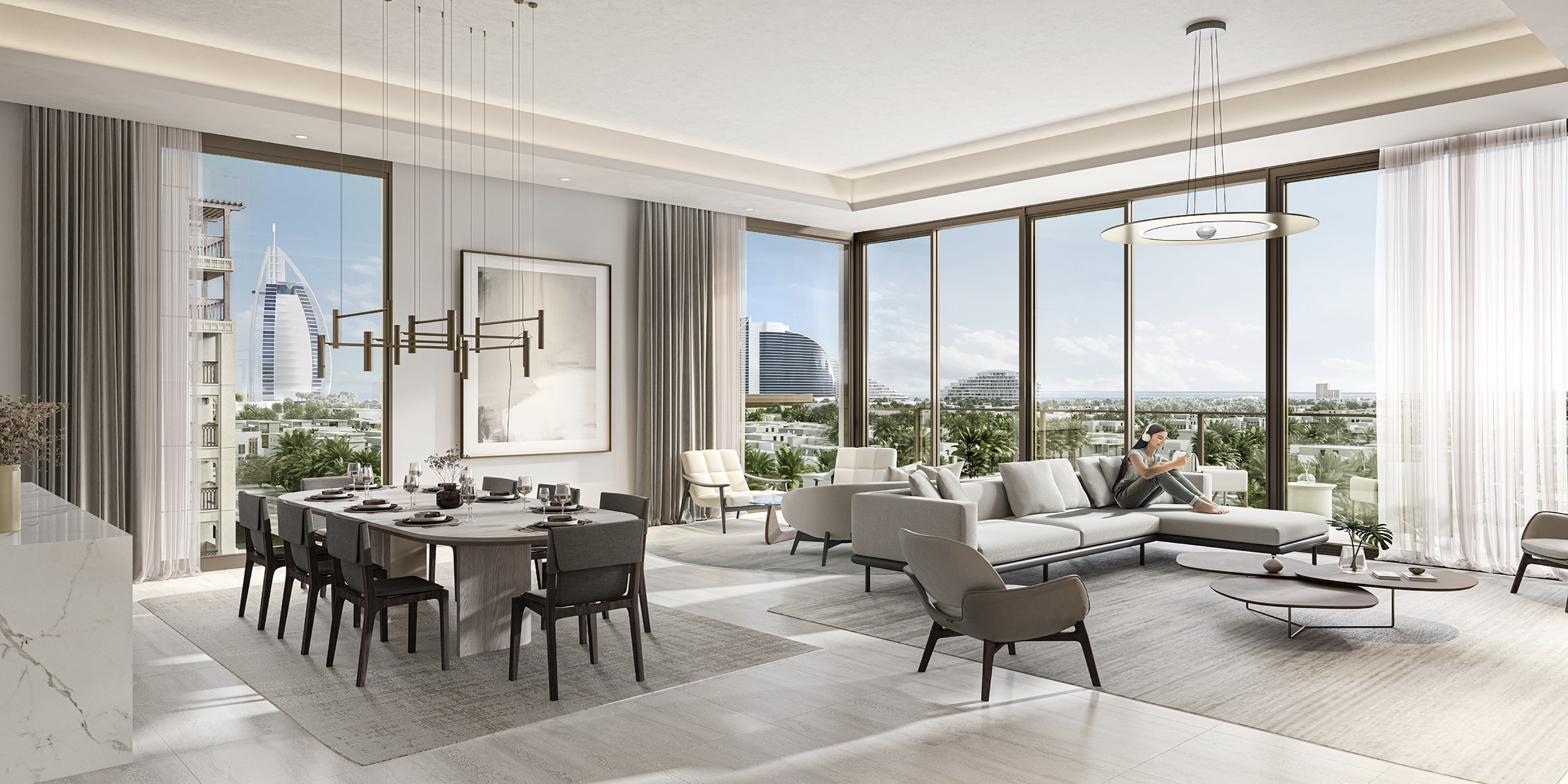 Комплекс покорит будущих жителей потрясающим сочетанием традиций и современного дизайна. Владельцы недвижимости смогут любоваться завораживающими видами на зеленые пейзажи и легендарный отель Burj Al Arab.