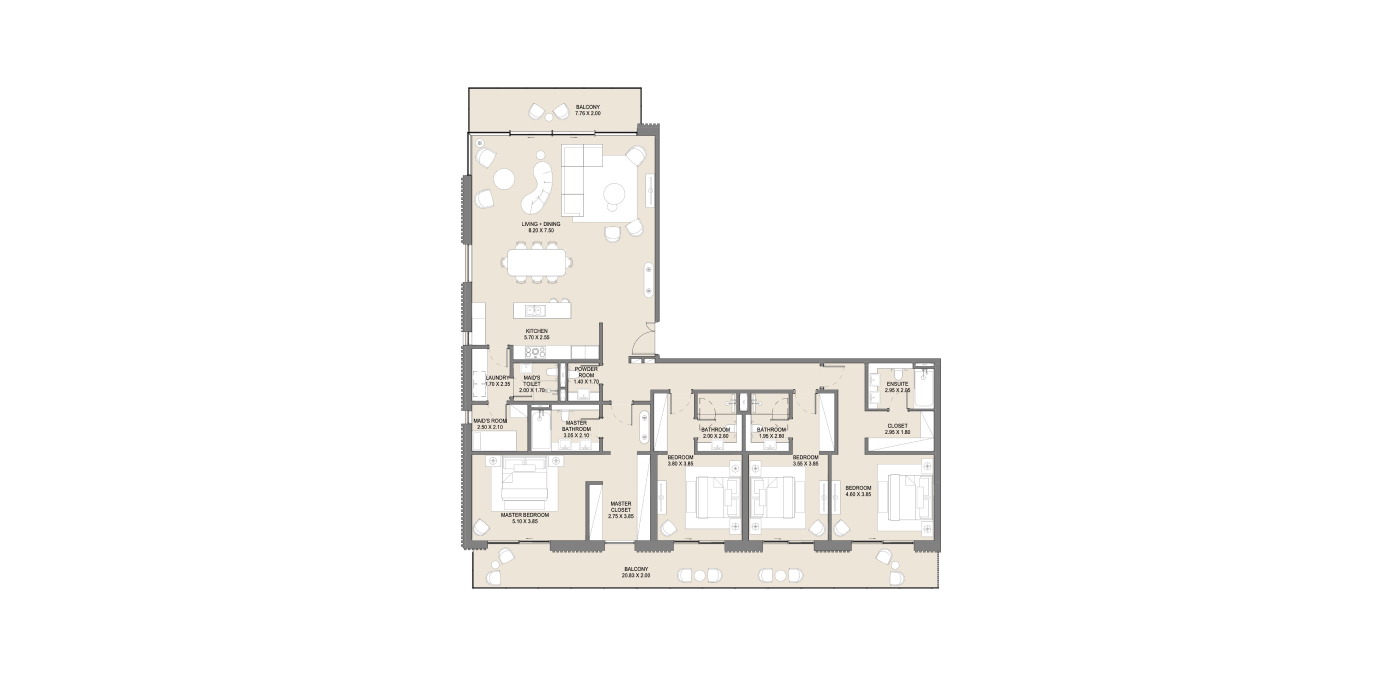 Роскошные апартаменты с 4 спальнями в ЖК Jomana от именитого застройщика Meraas, с премиальными удобствами.