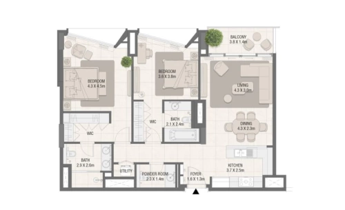 Роскошные апартаменты площадью 143 кв.м в центре моды и искусства Дубая. Жителям ЖК будут доступны премиальные удобства.