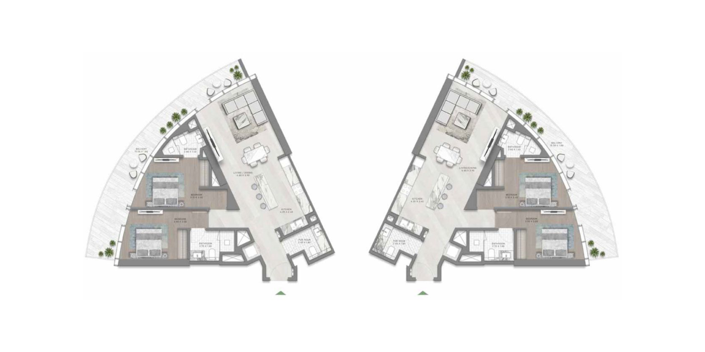 Изюминкой проекта является наличие закругленного балкона во всех резиденциях, с которого открывается вид на Dubai Water Canal или Burj Khalifa.