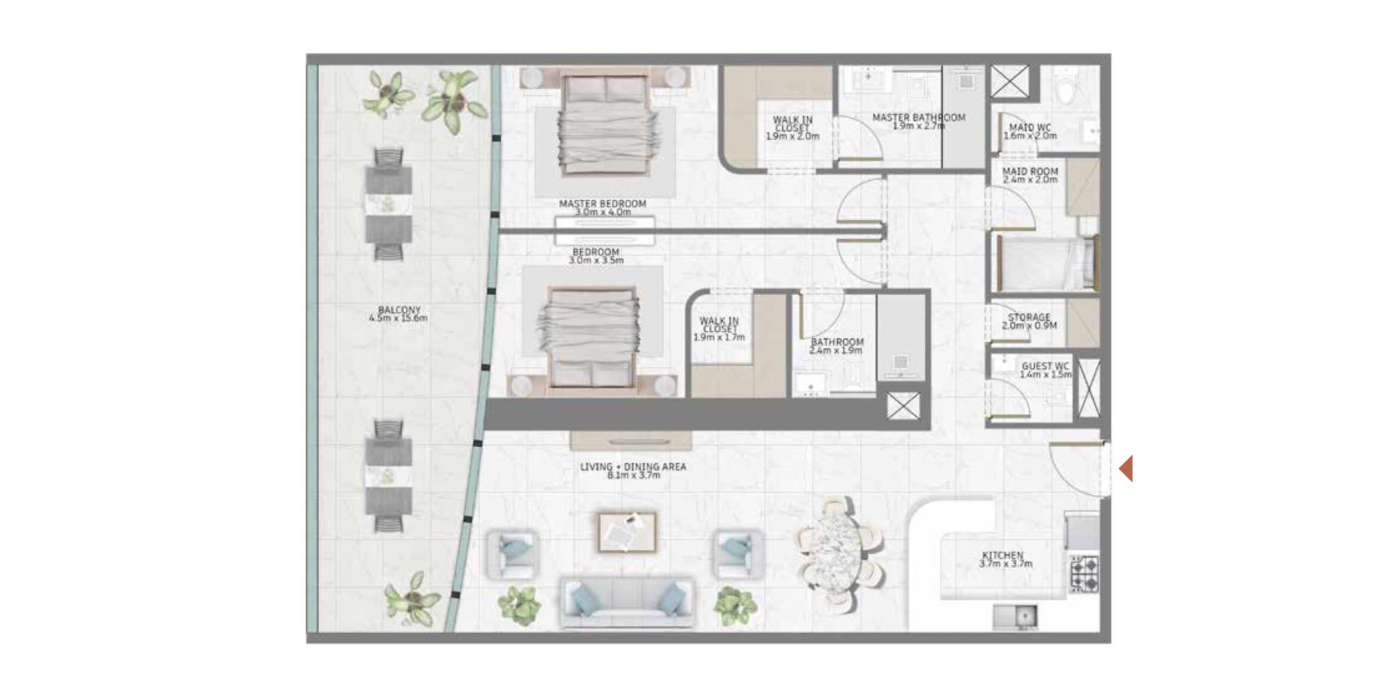 Просторные апартаменты площадью 152 кв.м с частной террасой и панорамным видом, расположенные в новом ЖК Al Habtoor Tower, в самом сердце Дубая.