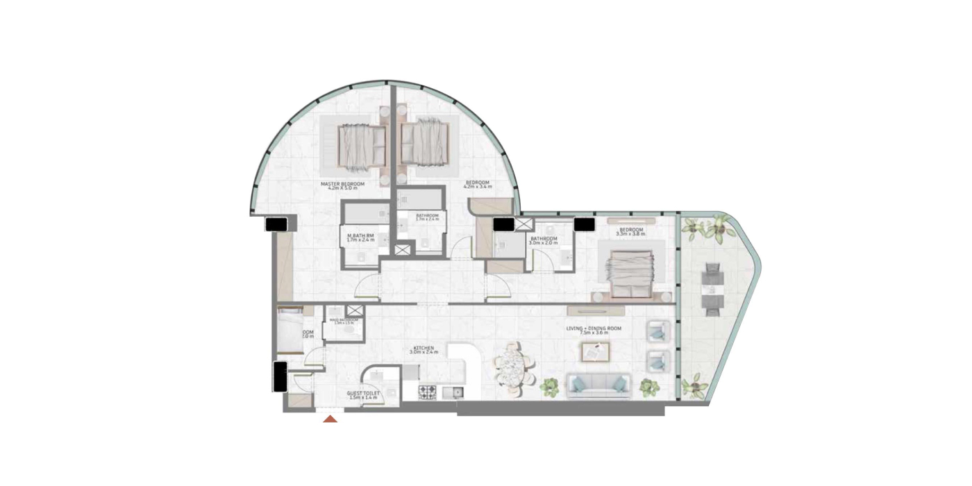3-спальные апартаменты с частной террасой и видом на ландшафтные сады в ЖК Central Park Erin, в центральном районе City Walk.
