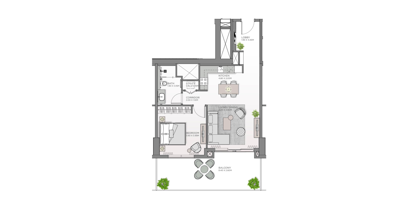1-спальные апартаменты 90 кв. м в ЖК Meraas Central Park Erin