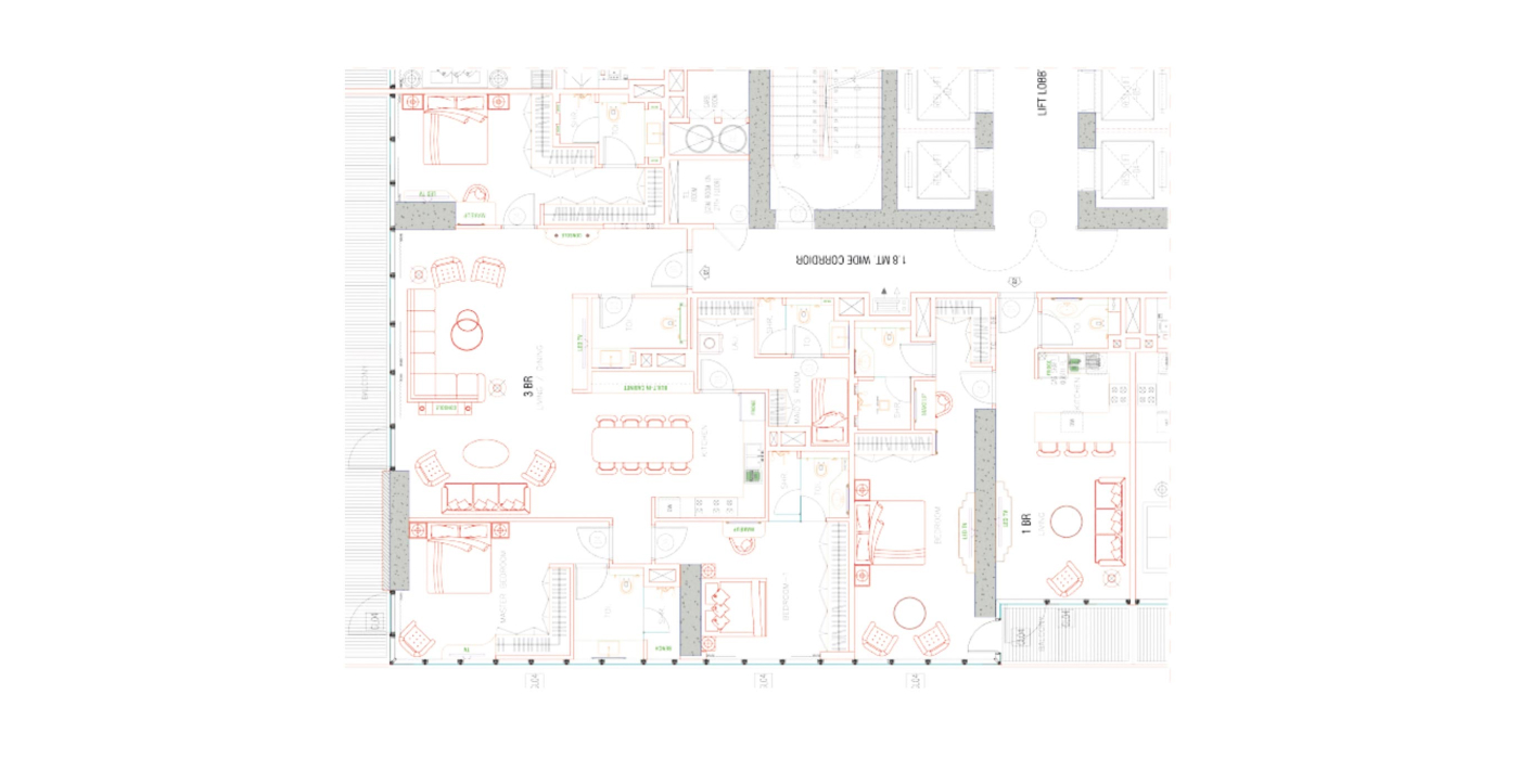 - в апартаментах с тремя спальнями предусмотрена комната для обслуживающего персонала с отдельным санузлом.