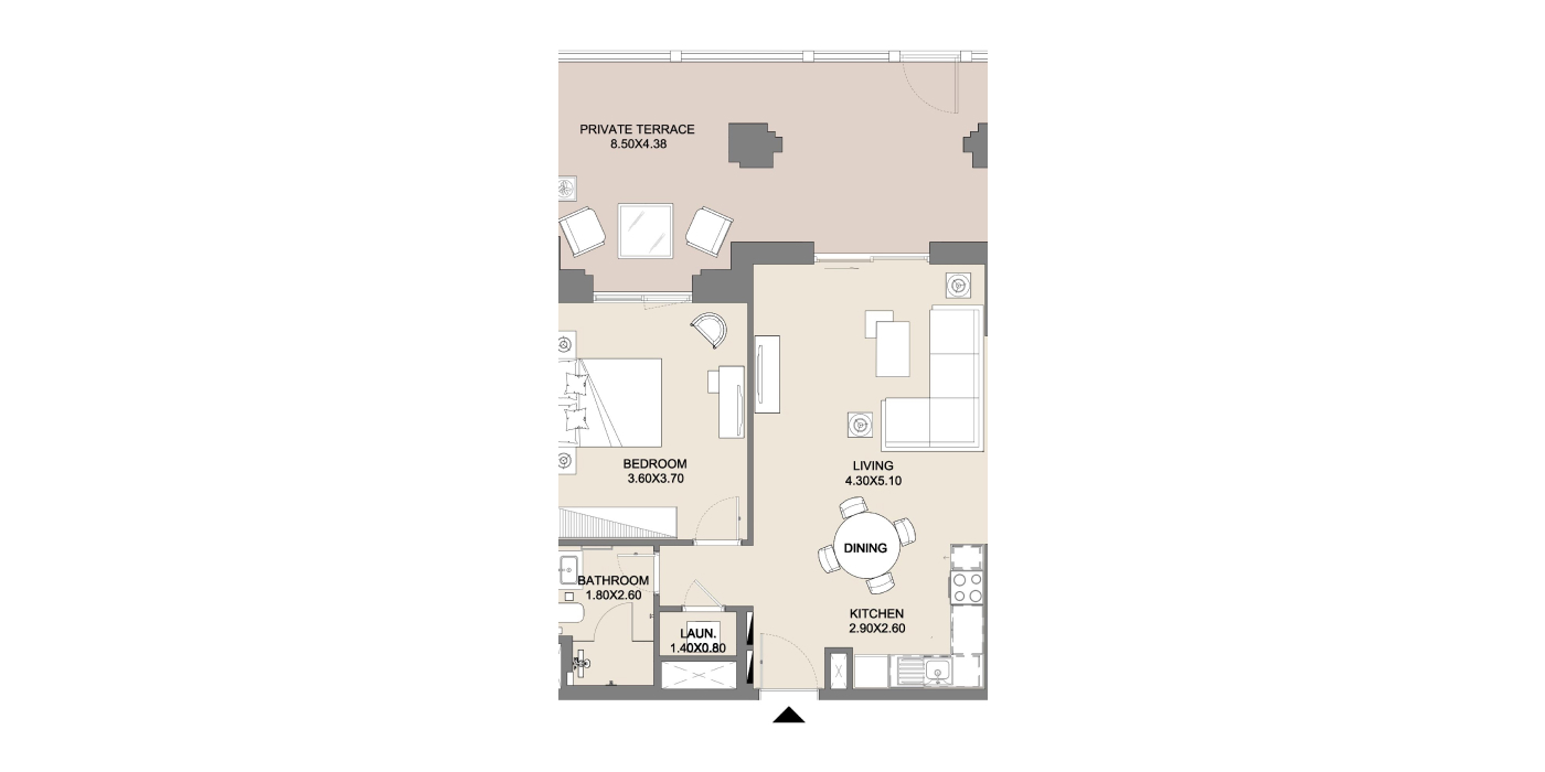 - открытая планировка помещений, просторные террасы, выходящие во внутренний двор, и панорамные окна во всю стену с живописным видом на окрестности MJL и Burj Al Arab создают ощущение воздушности и открытости окружающего пространства;