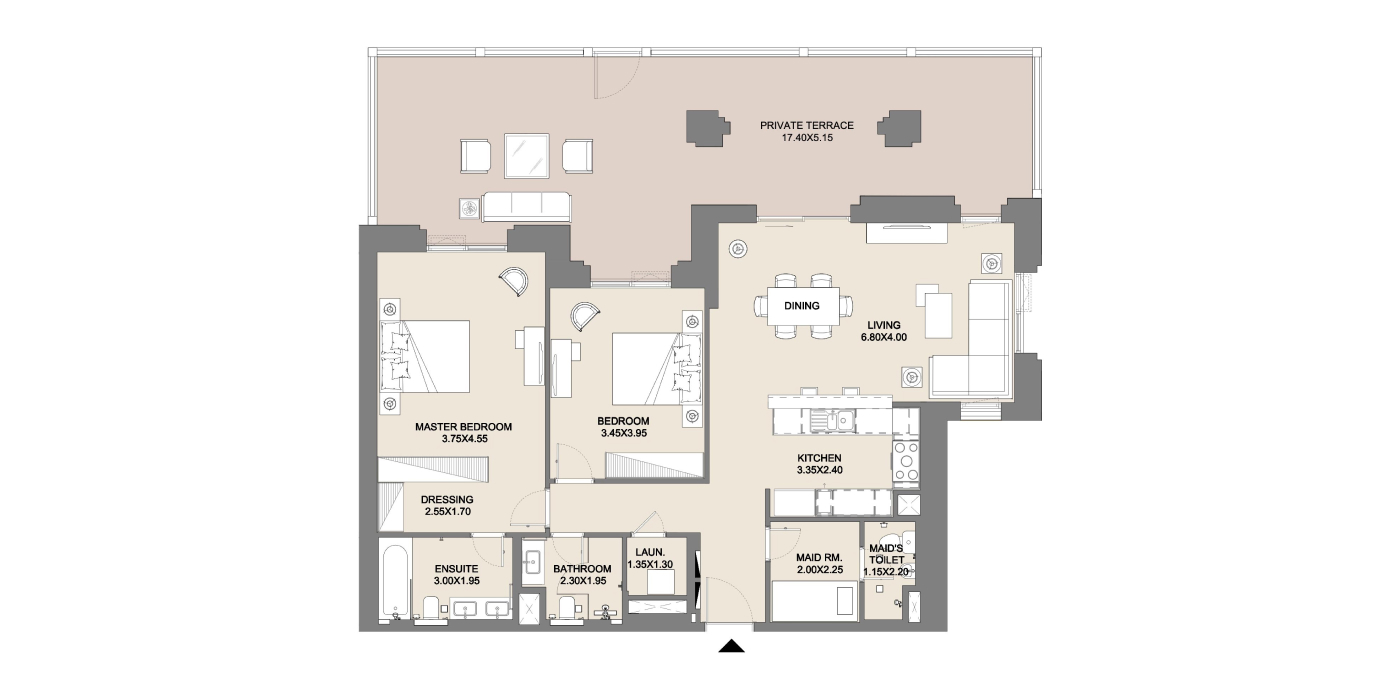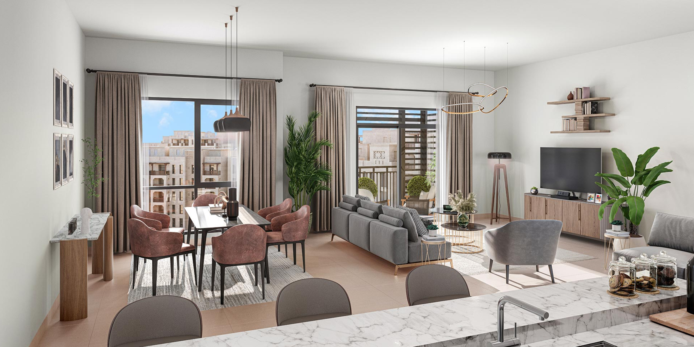 - открытая планировка помещений, просторные террасы, выходящие во внутренний двор, и панорамные окна во всю стену с живописным видом на окрестности MJL и Burj Al Arab создают ощущение воздушности и открытости окружающего пространства;