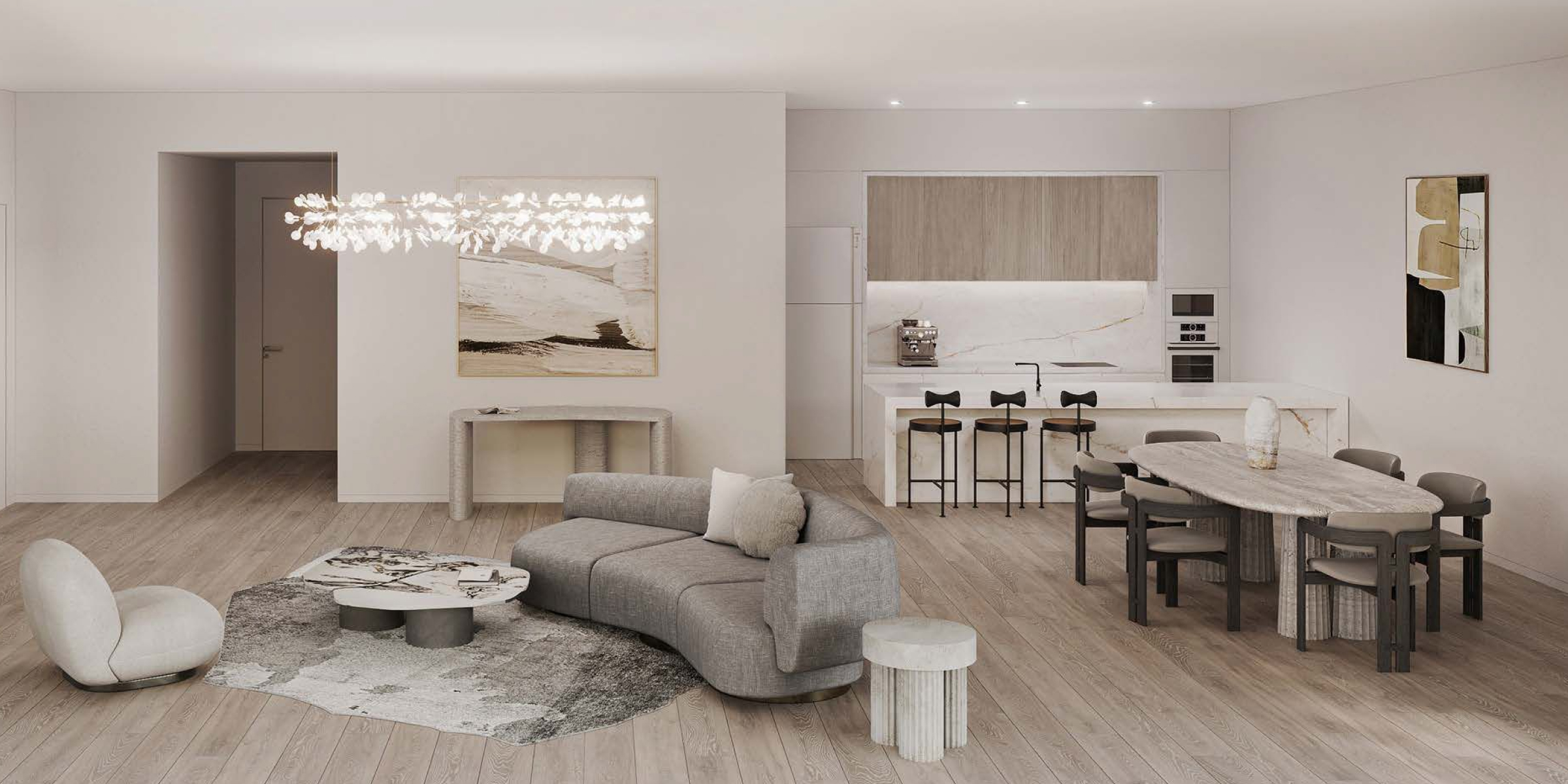 Уникальностью Kempinski Residences The Creek является потрясающий архитектурный проект, вдохновением которому послужили природные формы горной речной долины — каскадные террасы, открытое пространство и эксклюзивный ландшафтный дизайн, который дает ощущение спокойствия и уединения. Здания комплекса будут соединены между собой входным вестибюлем тройной высоты в стиле дзен.