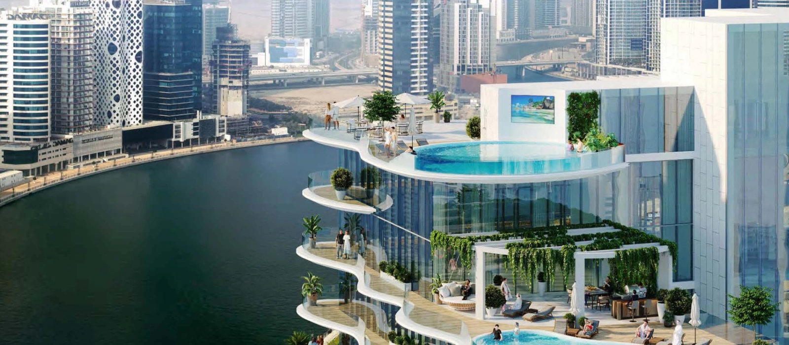 - изогнутые формы террас перекликаются с волнами Dubai Canal;