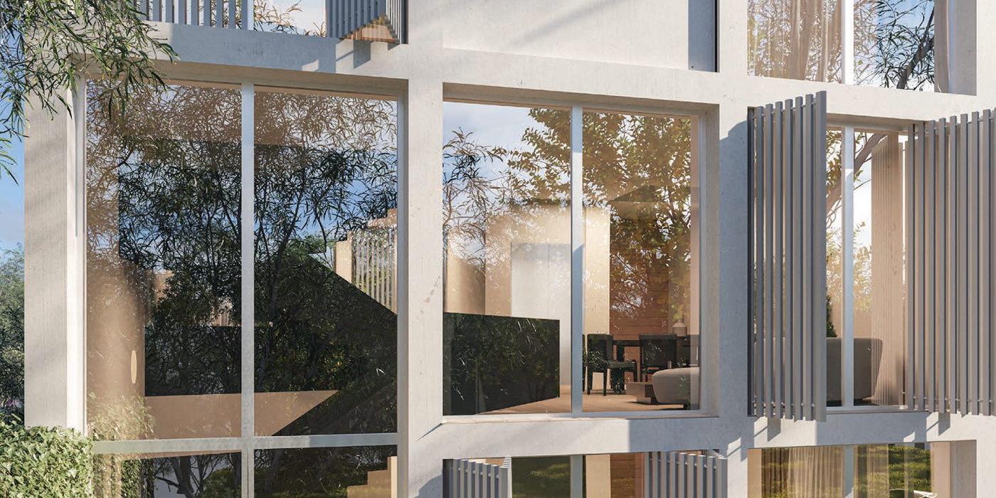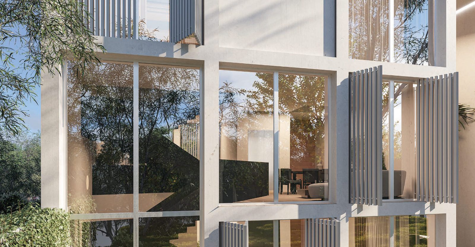 Уникальностью IXORA является сам проект сообщества. Его архитектурное оформление было сформировано вдохновением от цветущего растения иксоры, олицетворяющего утренний рассвет и символизирующего новое начало для Al Barari. Этот же цветок по проекту будет во множестве использован в уникальном ландшафтном дизайне окружающего пространства. Фасады зданий обрамляют композиции вертикальных бетонных блоков, которые дают затенение и формируют зоны. Открытость и объём помещениям, а также обзор на шикарные виды дают панорамные окна.