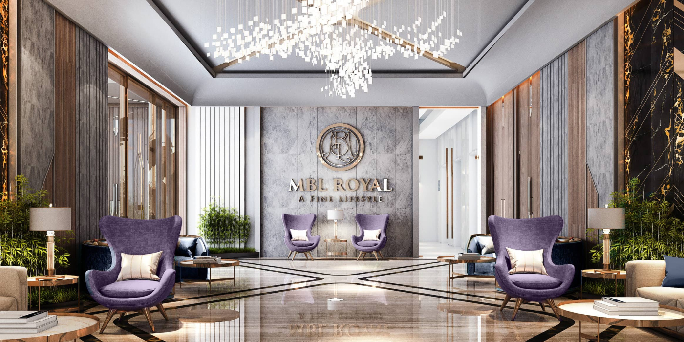 Уникальностью MBL Royal является его дизайн и отделка здания и апартаментов, определяющей характеристикой которых стала роскошь. Главной особенностью этого проекта станет стильная лаундж-зона в вестибюле. Его пространство будет оформлено с применением деревянных панелей, элементов черного мрамора, замысловатых люстр и стальных аксессуаров. Для максимального удобства и комфорта гостей и жителей предусмотрены изысканные кресла и мягкие диваны.