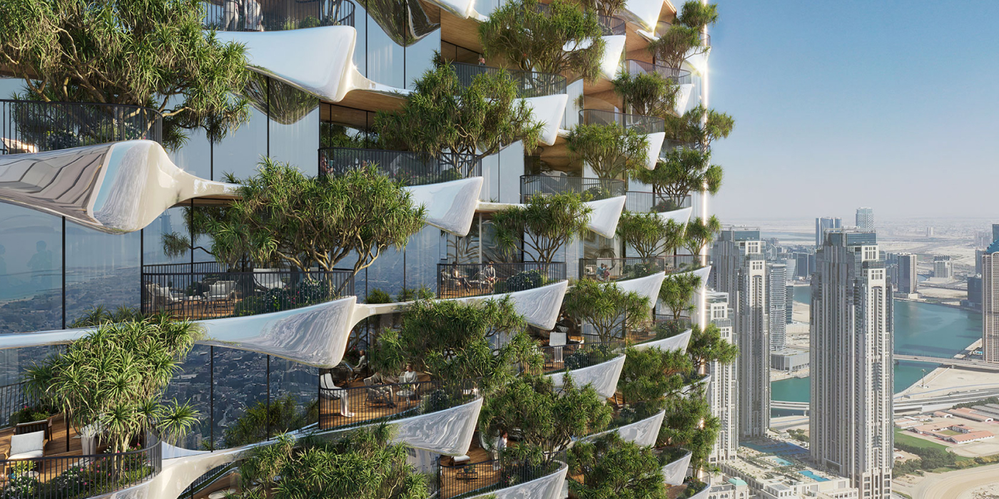 - каждый этаж небоскрёба будет иметь просторные террасы с ландшафтными садами;