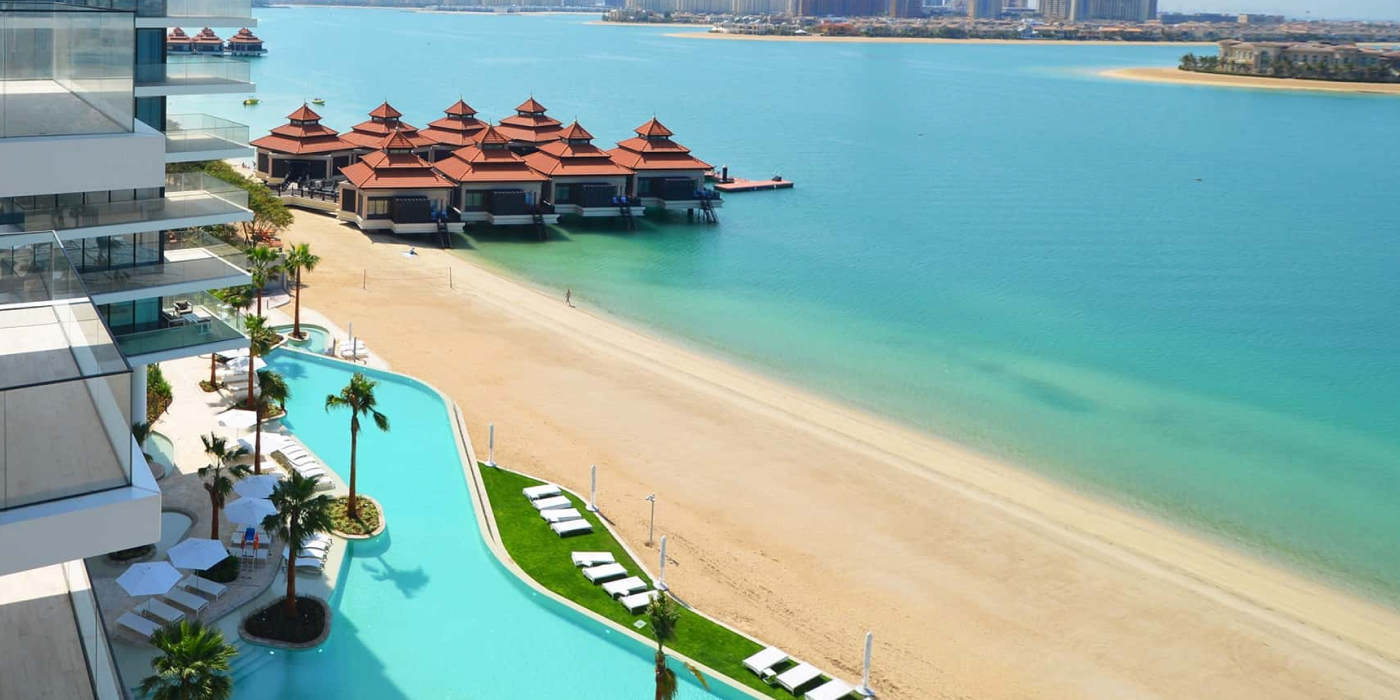 Стильные апартаменты в элитном ЖК на острове Palm Jumeirah с эксклюзивными удобствами и частным пляжем.