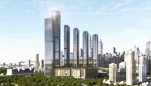 6 зданий 60–90 этажей с общим подиумом от самого знаменитого по качеству застройщика.